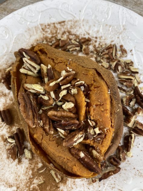 - Bake some extra potatoes and keep them in the fridge for a quick snack–they taste great hot or cold. Try them for breakfast with toasted pecans and cinnamon.