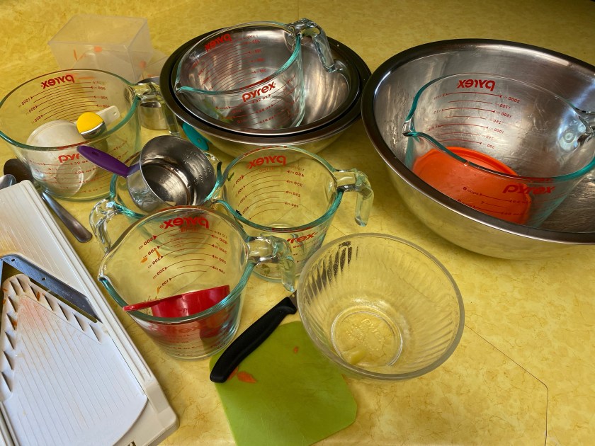 - 8 handfuls spring mix greens, tear the large leaves into bite-size pieces (1–16oz package of spring mix)=enough greens for 6 salads