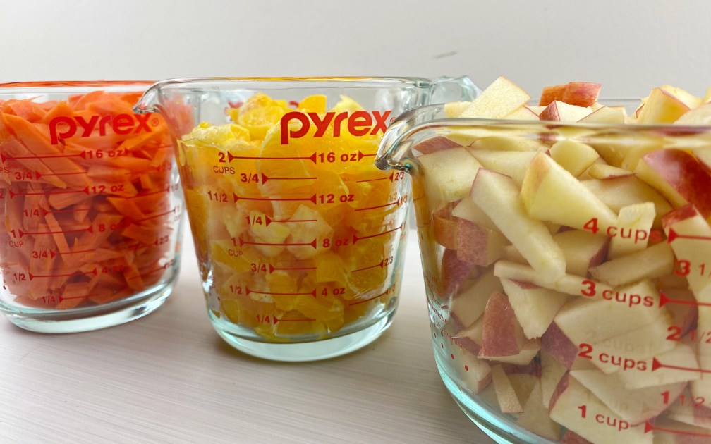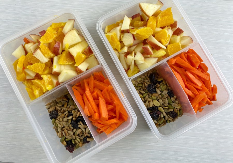 - PORTION fruit, veggies and nut, seed and Craisin mixture into containers.