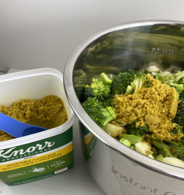 - SPRINKLE 3 Tablespoons of bouillon over the vegetables.