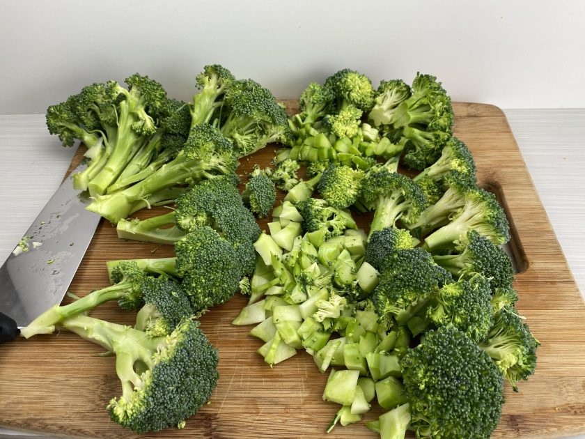 - 3 clusters of broccoli with about 3 inches of stem, roughly chopped (about 8 cups)