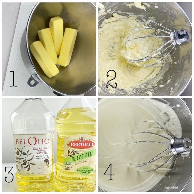 - REDUCE the mixing speed and pour a stream of olive oil into the butter.