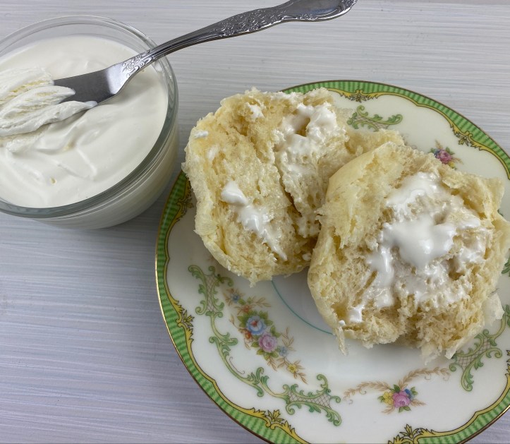 - POUR about 1/2 Tablespoon heavy cream over each roll (separate the layers a bit if necessary so the cream isn’t all on top).