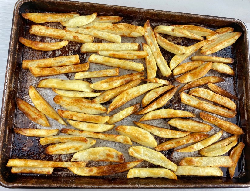 CONTINUE baking until fries are golden and crisp, 5 to 15 minutes longer, rotating pan as needed.