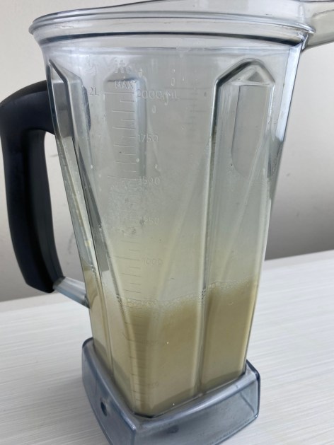 - MEASURE all batter ingredients into the blender or a medium size bowl EXCEPT for the flour. Blend or mix until combined.