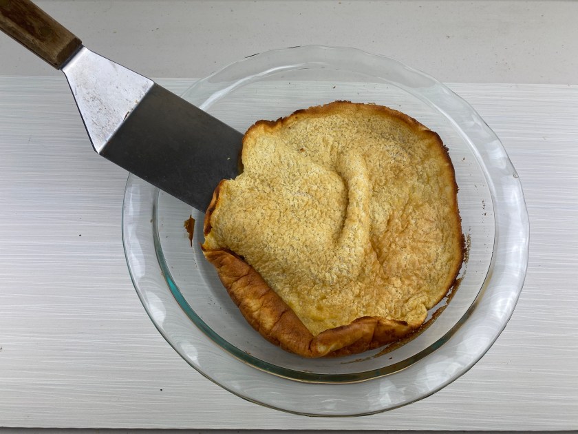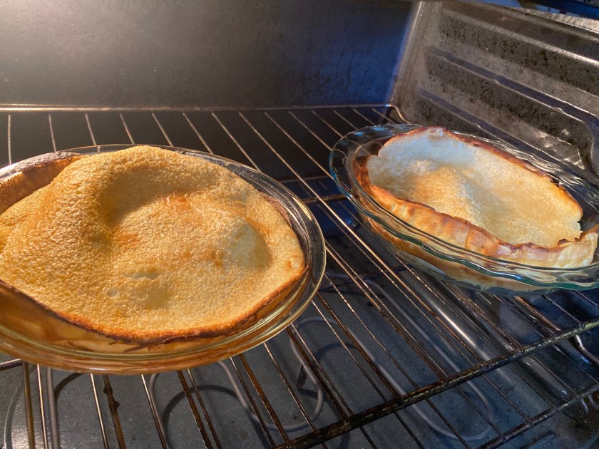 - REMOVE the pancake from the oven when it is covered in buttery brown speckles, has golden edges and is somewhat brown on the bottom.