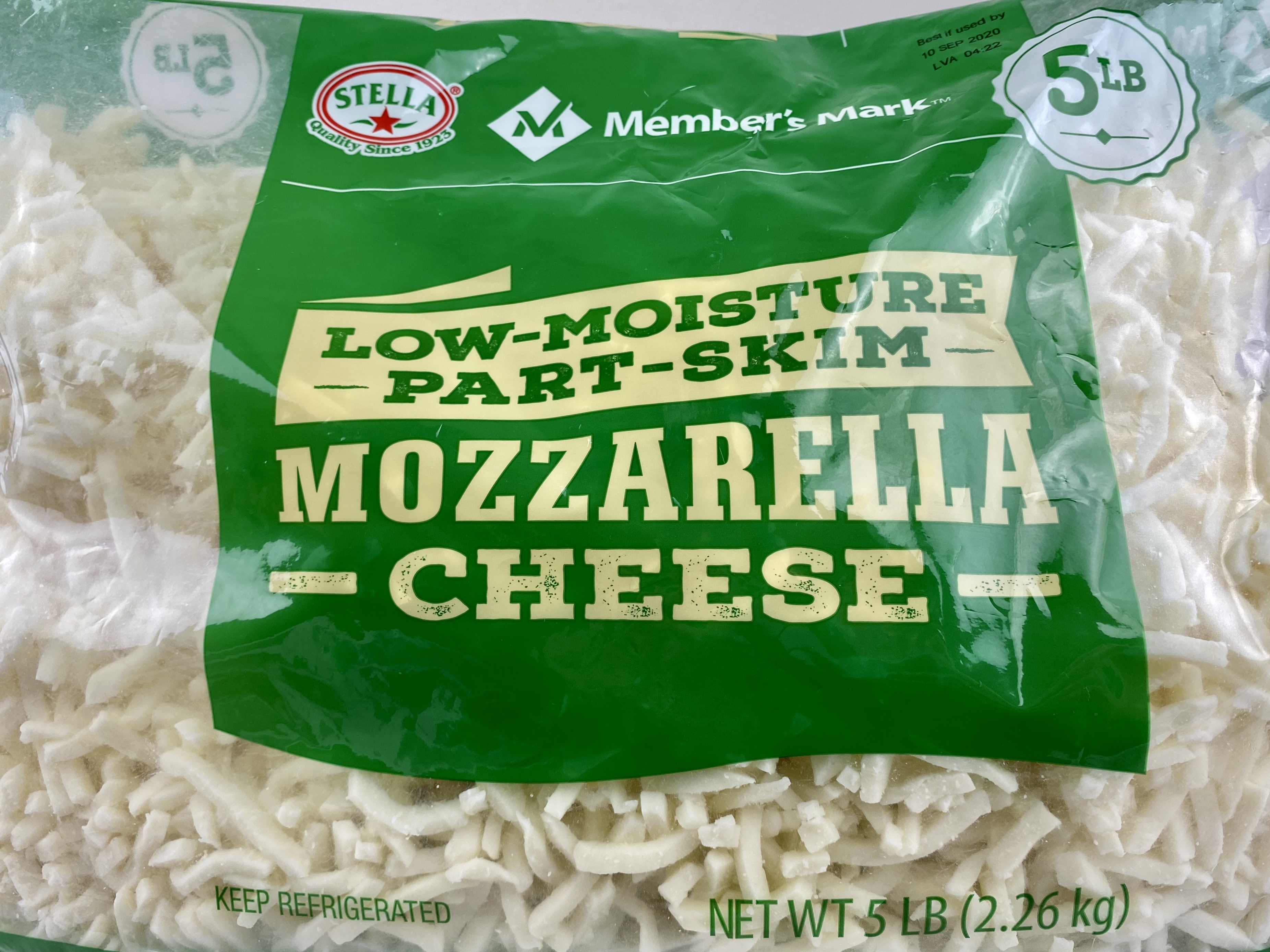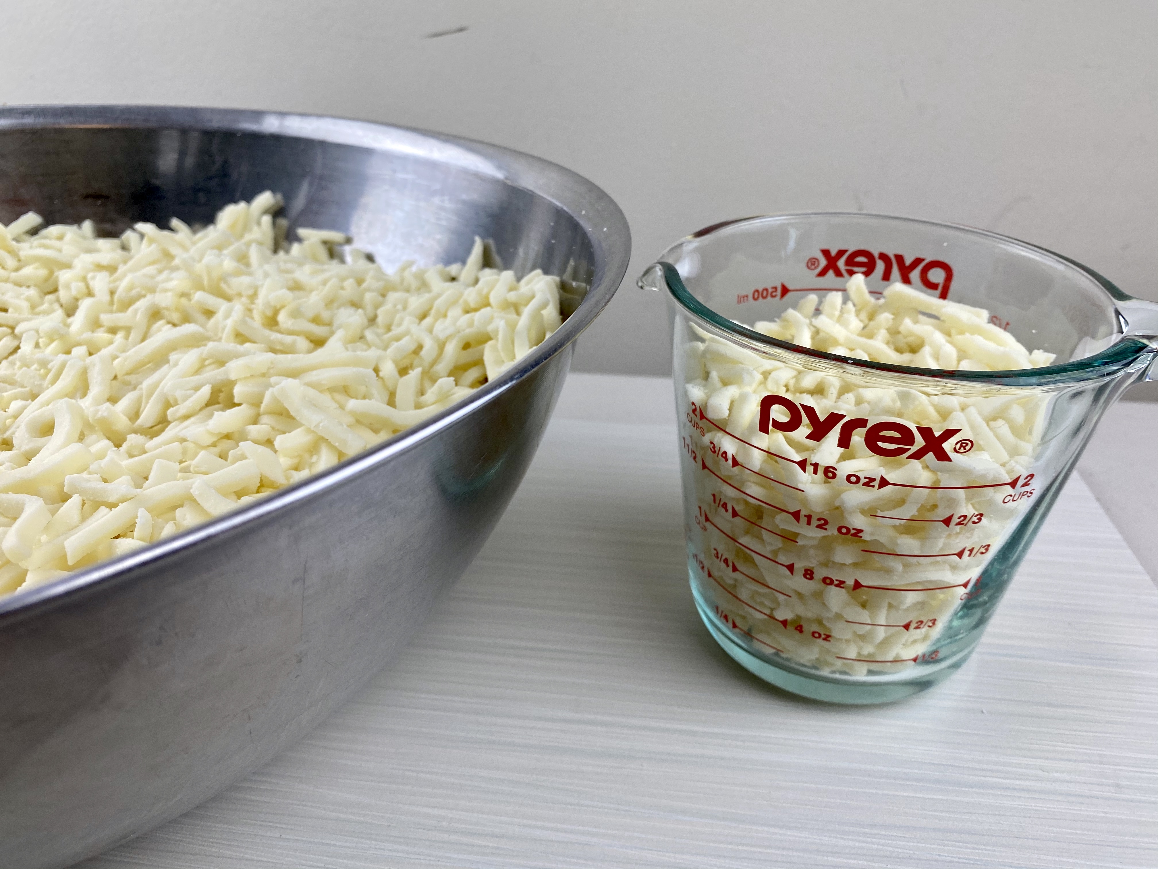 2 cup portions of mozzarella cheese