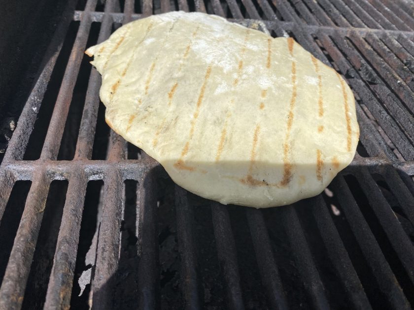 - GRILL: Brush most of the flour from flat before grilling. Place in hot grill. Wait for the bread to puff then turn it over.