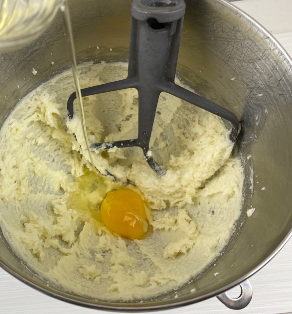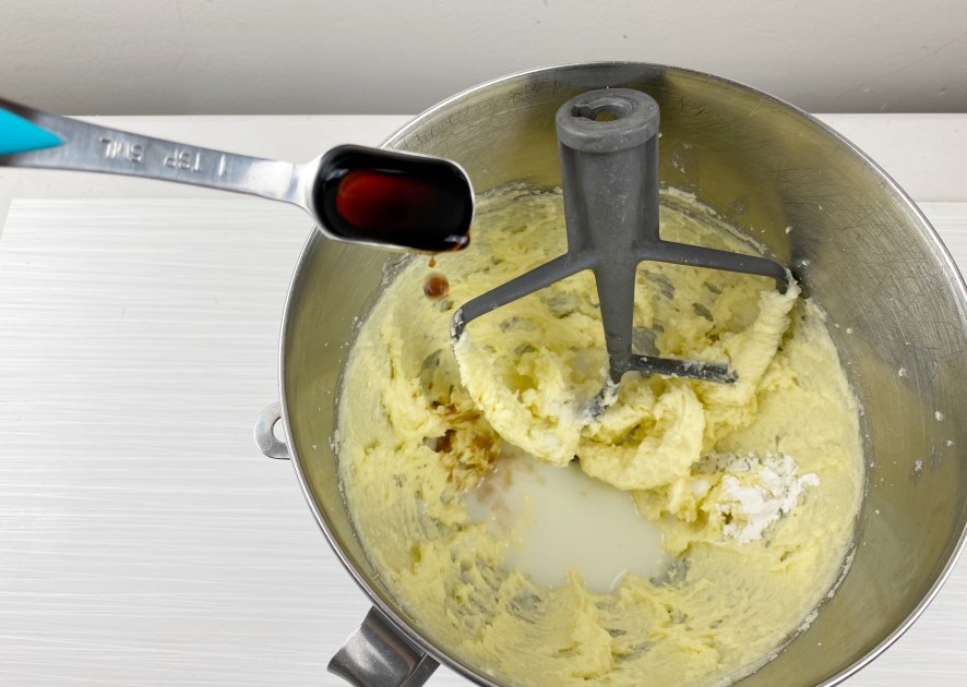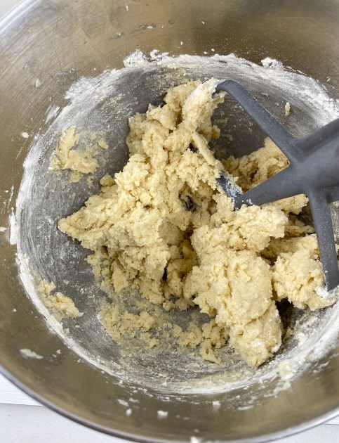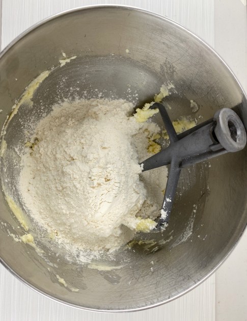 - MEASURE 2-1/2 cups flour into the bowl and mix on low until the flour is just incorporated. Scrape down the sides of the bowl.