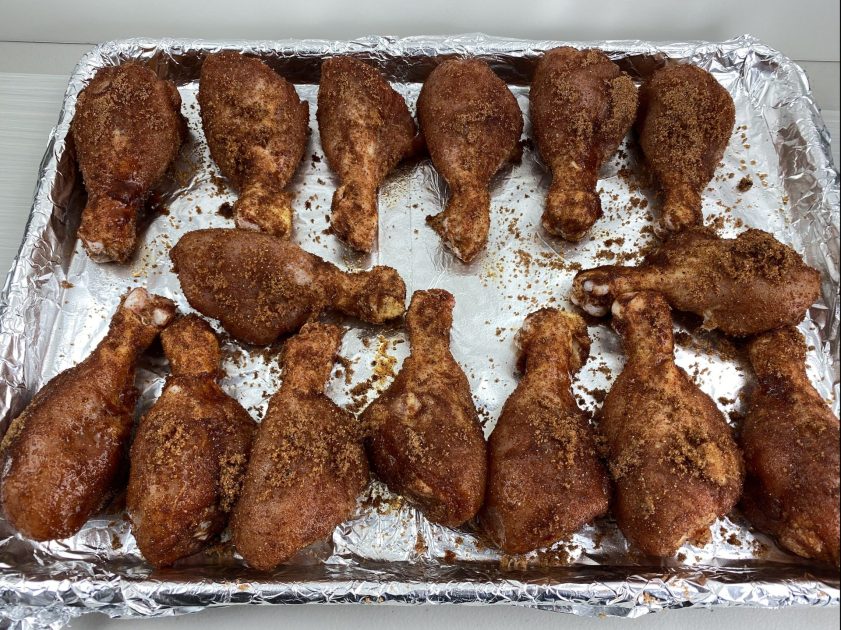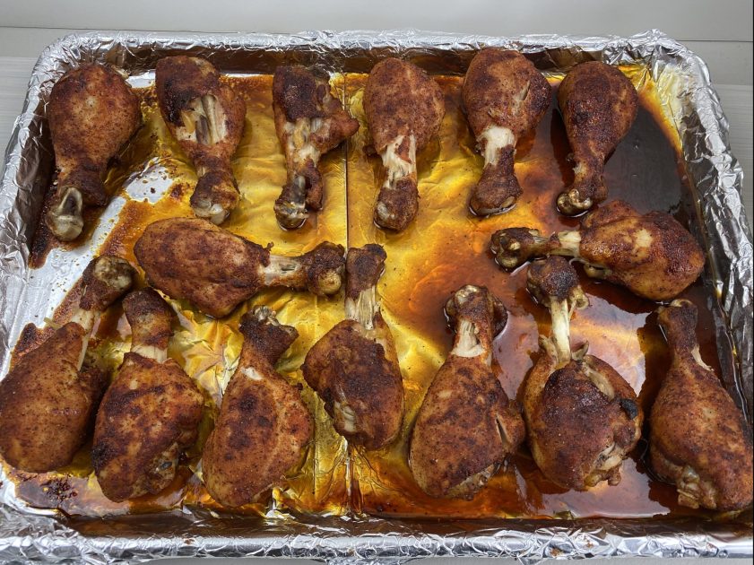 - ARRANGE drumsticks, on a foil-lined 12×18 baking sheet coated with non-stick spray.