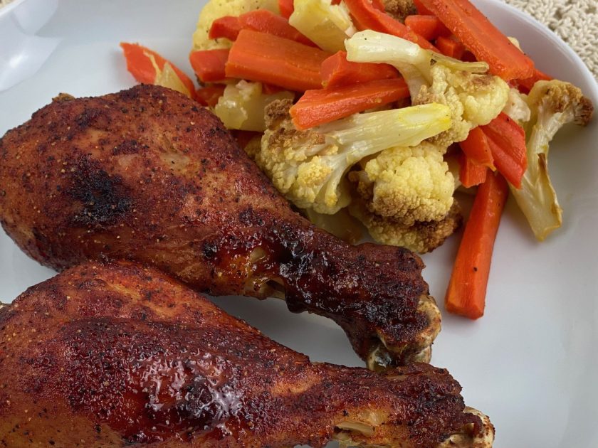 - PLACE the spices on a dinner or pie plate. Mix thoroughly. Holding 1 drumstick by bone end, sprinkle or press lightly into the spices. Rub on all sides. Pat gently to remove excess. Repeat with remaining drumsticks. Sprinkle any remaining spice rub on the drumsticks.